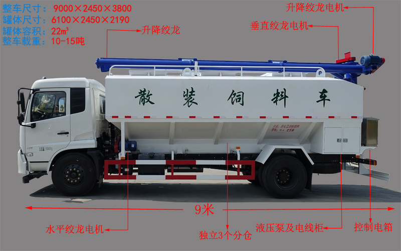 (4)料罐容積:20-24方,3個獨立倉,實載:豬料14噸,雞料16噸