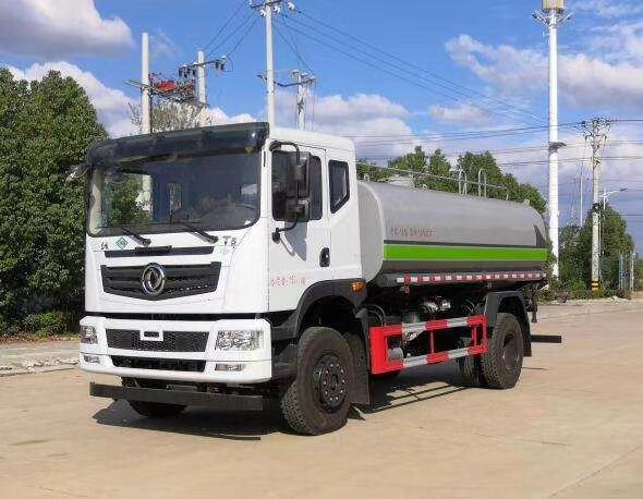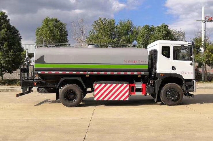 灑水車前裝有鴨形噴嘴或圓頭沖嘴,后面裝有圓柱開灑水噴嘴或蓮蓬頭噴嘴,后部有一工作平臺,裝配有水炮。后部還可裝8個噴嘴(選裝)