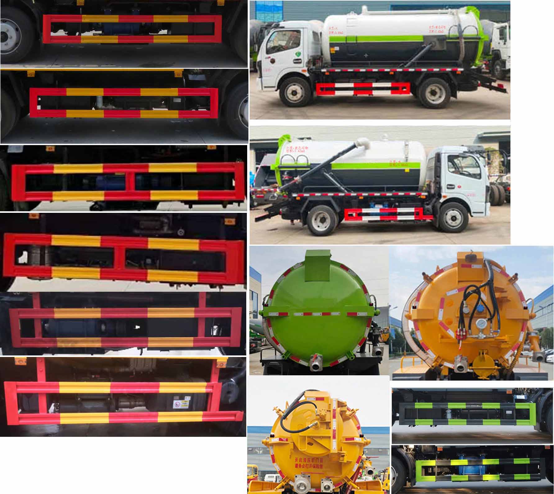ABS型號:ABS/ASR-24V-4S/4M;ABS生產企業:襄陽東風隆誠機械有限責任公司;選裝描述:隨底盤選裝駕駛室;側后防護情況:側、后防護材料均為:Q235碳鋼,側防護連接方式為:螺栓連接,后防護連接方式為:焊接連接,后部防護截面尺寸(mm):120×50,后部防護離地高度(mm):450;罐體外形尺寸(直段長×直徑)(mm):4250×1650(前部1450mm為清水罐,后部2800mm為污水罐)。污水罐總容量:5.64立方米,污水罐有效容積:5.37立方米,介質:液態污物,密度800千克/立方米;清水罐總容量:3.6立方米,清水罐有效容積:3.43立方米,介質:,密度1000千克/立方米;該車用于下水道排污及疏通,專用裝置:罐體及清洗吸污裝置;其他說明:卸料方式:舉升后卸;清水罐和污水罐為獨立罐體,清洗功能時用清水罐,吸污功能時用污水罐,污水罐和清水罐不可同時滿載;選裝燃油箱,電瓶,尿素罐,儲氣筒左右安裝位置。選裝側/后部樣式。選裝限速裝置時最高車速為:89km/h.