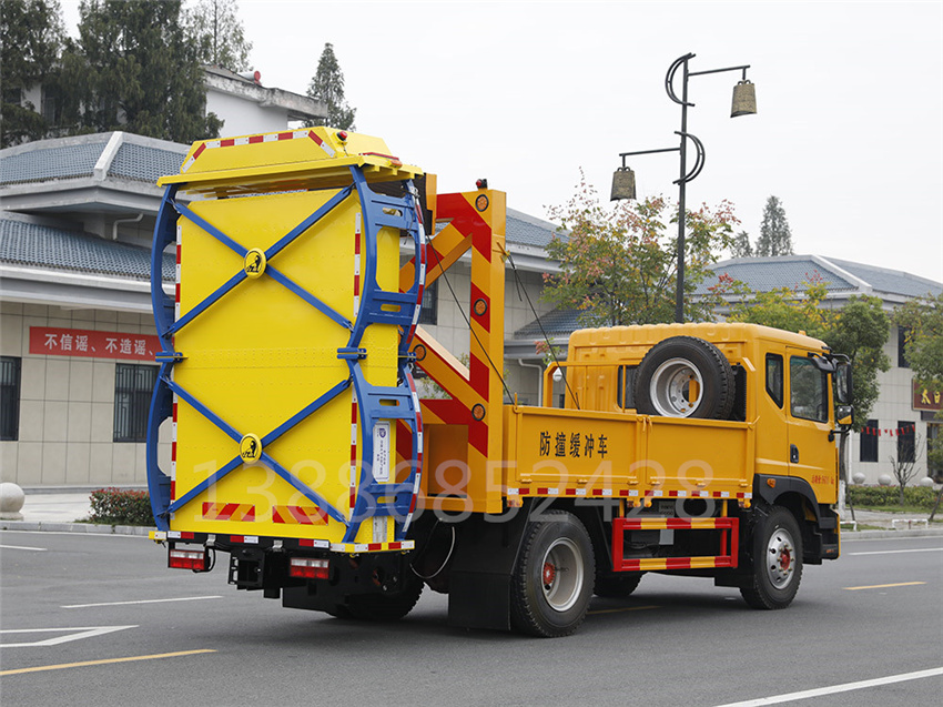 防撞緩沖車采用國六東風(fēng)天錦底盤。防撞緩沖模塊升降采用液壓控制,過程平穩(wěn)、安全、機(jī)械化作業(yè)程度高,操作方便。防撞緩沖模塊整體采用國產(chǎn)乾行達(dá)公司技術(shù)產(chǎn)品100E防撞緩沖模塊,太平洋保險(xiǎn)承保。適用于城市道路,郊區(qū)道路,高速公路,機(jī)場(chǎng)橋涵等場(chǎng)合。主要功用:置于道路施工作業(yè)人員和設(shè) 備后方,在發(fā)生追尾事故中充當(dāng)肇事車輛和施工作業(yè)人員或設(shè)備的緩沖區(qū)域,并且通過自身結(jié)構(gòu)變形吸收撞 擊能量,最大限度的降低施工人員或設(shè)備發(fā)生危險(xiǎn)的幾率,同時(shí)最大限度的降低肇事車輛及人員的危險(xiǎn)。