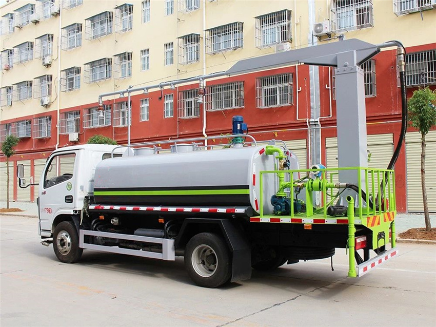 上裝配置:罐體為5立方圓形罐,罐體內部做防腐,帶加熱功能,前沖、后灑、側噴、高炮,抑塵噴灑桿(帶旋轉伸縮功能)。噴灑桿離地3.4-4.4米,后部平臺帶8KW副發電機組,罐體內部加兩個1.5KW電動馬達(帶攪拌功能)罐體噴漆嚴格按公告色。