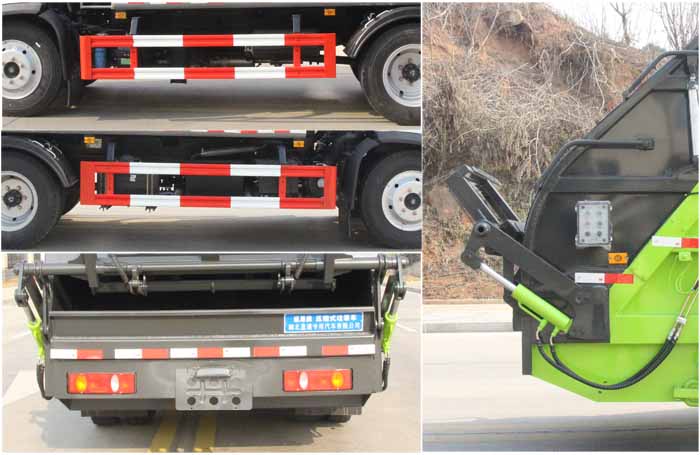 東風壓縮垃圾車,壓縮對接式垃圾車,多利卡壓縮垃圾車,壓縮垃圾站,該車專用裝置為垃圾箱體及液壓系統裝置,主要用于垃圾的收集,轉運作業.選裝無上料裝置時無后伸,選裝密封斗裝置,擺臂裝時,后伸280mm,選裝翻轉機構,翻掛桶,三角斗時,后伸380mm.側防護材料均為:Q235碳鋼,連接方式均為:螺栓連接,后部防護由專用裝置代替,后部防護離地高度(mm):500.ABS型號及生產廠家為:3631010-C2000/東科克諾爾商用車制動系統(十堰)有限公司,J ABS/焦作博瑞克控制技術有限公司.發動機型號/油耗值(L/100km)對應關系:YCY30165-60/19.7,D25TCIF1/20.1.該車型可選裝直接供電式ETC車載裝置.僅采用3800mm軸距底盤改裝.選裝樣車側面樣式.