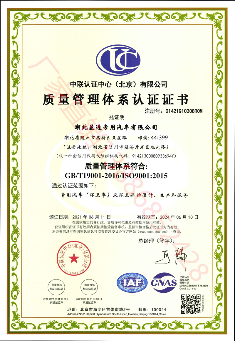 湖北盈通專用汽車有限公司愿竭誠為您服務,并期待您來我廠實地考察生產實力及產品工藝,我們為您提供最優質的服務。 程力汽車集團位于中國專用汽車之都—湖北省隨州市。在隨州市曾都區南郊,曾都經濟技術開發區、武漢等地均有生產制造基地。   湖北盈通專用汽車有限公司 3C認證
