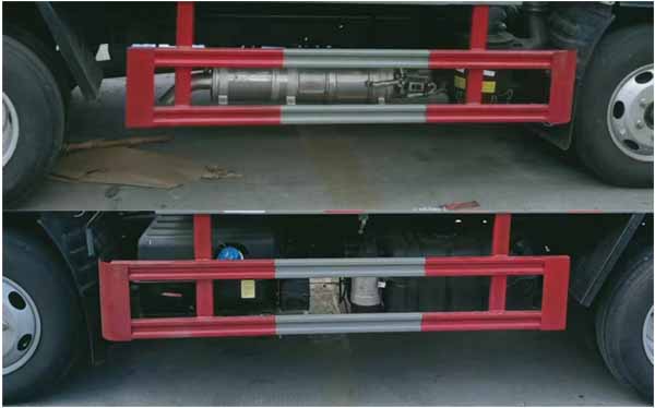 液壓尾板桶裝垃圾收集車|福田桶裝垃圾運(yùn)輸車|藍(lán)牌桶裝垃圾車|時(shí)代藍(lán)牌垃圾收集車,該車用于桶裝垃圾收集轉(zhuǎn)運(yùn),專用裝置:貨廂和后尾板升降機(jī)構(gòu);液壓尾板收起狀態(tài)的水平長度為180mm;尾板質(zhì)量為270kg;ABS型號為CM4XL-4S/4M,生產(chǎn)廠家為廣州瑞立科密汽車電子股份有限公司;側(cè)、后防護(hù)材料均為:Q235碳鋼,側(cè)防護(hù)連接方式為:螺栓連接,后防護(hù)連接方式為:焊接連接,后部防護(hù)截面尺寸(mm):100×50,后部防護(hù)離地高度(mm):400.選裝直接供電式ETC車載裝置;隨底盤選裝駕駛室.發(fā)動機(jī)/油耗值為(L/100km):Q23-115E60/11.12,Q23-115C60/11.31.僅采用底盤2850mm軸距改裝.該車型整備質(zhì)量包含備胎、滅火器、隨車工具。選裝電瓶油箱位置。 |