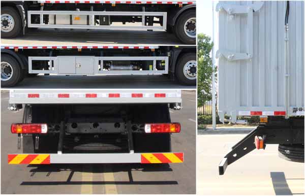 該車(chē)專(zhuān)用裝置為箱體、液壓控制系統(tǒng)等專(zhuān)用裝置,主要用于實(shí)現(xiàn)垃圾的裝載和轉(zhuǎn)運(yùn)卸料作業(yè).卸料方式為后卸.車(chē)廂頂部封閉,不可開(kāi)啟.側(cè)/后部防護(hù)裝置材料:Q235碳鋼,連接方式均為:螺栓連接;后防護(hù)截面尺寸120×60mm,后部防護(hù)離地高度(mm):460.ABS系統(tǒng)型號(hào)/生產(chǎn)企業(yè)對(duì)應(yīng)關(guān)系:ABS-E/威伯科汽車(chē)控制系統(tǒng)(中國(guó))有限公司;ABS/ASR-24V-4S/4M/東科克諾爾商用車(chē)制動(dòng)系統(tǒng)(十堰)有限公司;CM4XL-4S/4M/廣州瑞立科密汽車(chē)電子股份有限公司;3550D-1010/東科克諾爾商用車(chē)制動(dòng)系統(tǒng)(十堰)有限公司.該車(chē)安裝具有衛(wèi)星定位功能的行駛記錄儀.發(fā)動(dòng)機(jī)型號(hào)與油耗值對(duì)應(yīng)關(guān)系為(L/100km):B6.2NS6B210/26.00,B6.2NS6B230/26.91,F4.5NS6B190/24.40,D6.7NS6B230/26.80,F4.5NS6B220/24.40.該車(chē)可選裝直接供電式ETC車(chē)載裝置.僅采用底盤(pán)5750mm軸距改裝.隨底盤(pán)選裝限速裝置,限速89km/h.該車(chē)后軸僅采用鋼板彈簧懸架。 |