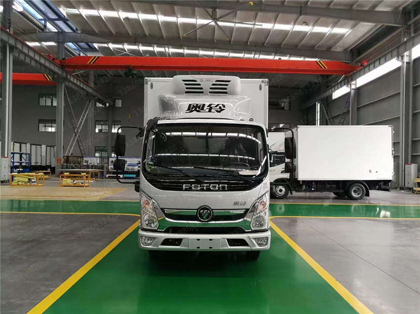 奧鈴速運冷藏車采用福田康明斯131/150/156馬力(F2.8NS6B131/F2.8NS6B150/F2.8NS6B156發動機,采埃付5變速箱,NPR沖壓后橋(帶制動襯片磨損報警),7.00R16輪胎,斷氣剎、單排翻轉、車載無線服務控制器(T-BOX)、ABS、離合助力、動轉,