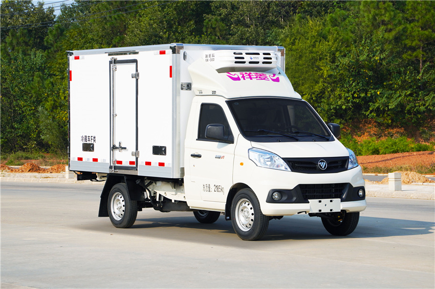 福田祥菱M1冷藏車采用國六汽油東安115馬力(DAM15KR發動機,5變速箱,2750軸距,高配,原廠空調,后雙胎,5檔變速箱,175R14后雙胎,122后橋,ABS,電動助力轉向