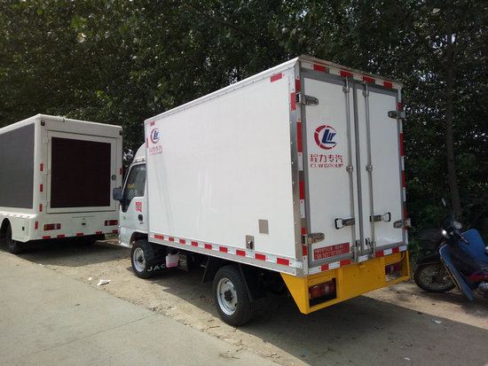 冷藏車廂體:采用國標A級聚氨酯保溫材料,厚度為8厘米,廂體內外采用玻璃鋼材質全包裹。不銹鋼鎖件。包角、包邊鋁合金型材。底盤采用高強度花紋鋁板定制。可選裝肉鉤導軌,和底部通風槽。