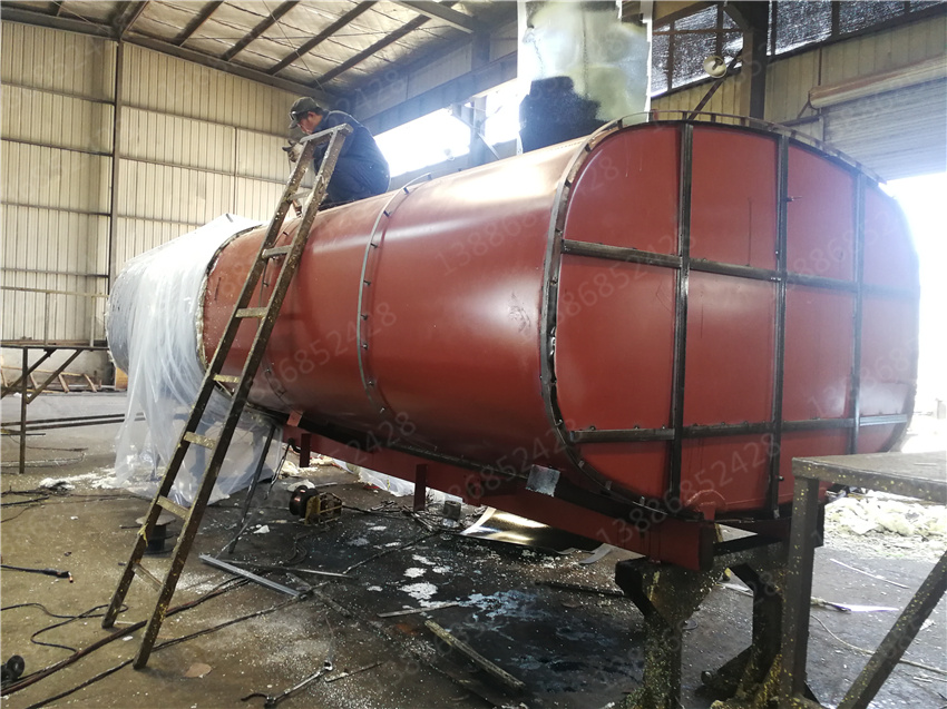 3. 保層溫的制作是在水罐外部另外焊接10mm厚的支撐骨架,然后用保溫材料將骨架內(nèi)部填充滿,**在骨架外蒙上一層外皮。 保溫層外表鐵皮采用8mm厚高強度耐磨板,可選擇使用不銹鋼分鏡面8K或磨砂板