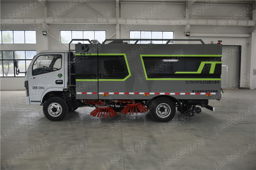 東風掃路車,福瑞卡掃路車,國六掃路車,掃路車價格,掃路車廠家 ,掃路車報價,馬路清掃車,該車主要作用于路面的清掃作業;專用裝置為清掃裝置、垃圾箱。ABS型號/廠家:ABS/ASR-12V-4S/4M/襄陽東風隆誠機械有限責任公司;側防護裝置為專用裝置代替,后防護材料均為:Q235碳鋼,連接方式為:螺栓連接,后部防護截面尺寸(mm):120×50,后部防護離地高度(mm):370.隨底盤選裝駕駛室。選裝燃油箱,電瓶,尿素罐,儲氣筒左右安裝位置。