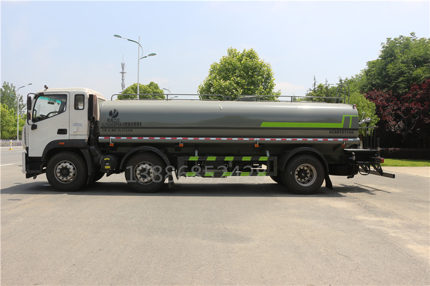該車主要用于城鄉園林綠化噴灑;主要裝置為罐體及噴灑裝置;罐體有效容積:16.07立方米,罐體外形尺寸(×長軸×短軸)(mm):6700×2400×1470;側、后防護材料均為:Q235碳鋼,連接方式均為:螺栓連接,后部防護截面尺寸(mm):120×50,后部防護離地高度(mm):480;ABS系統型號/生產企業對應關系:CM4XL-4S/4M,廣州瑞立科密汽車電子股份有限公司.采用底盤2100+4200軸距(mm)